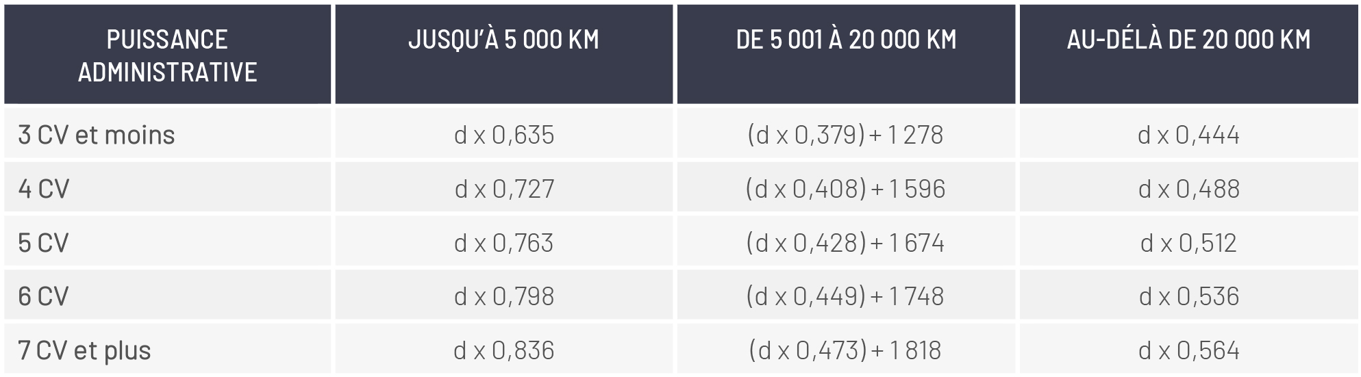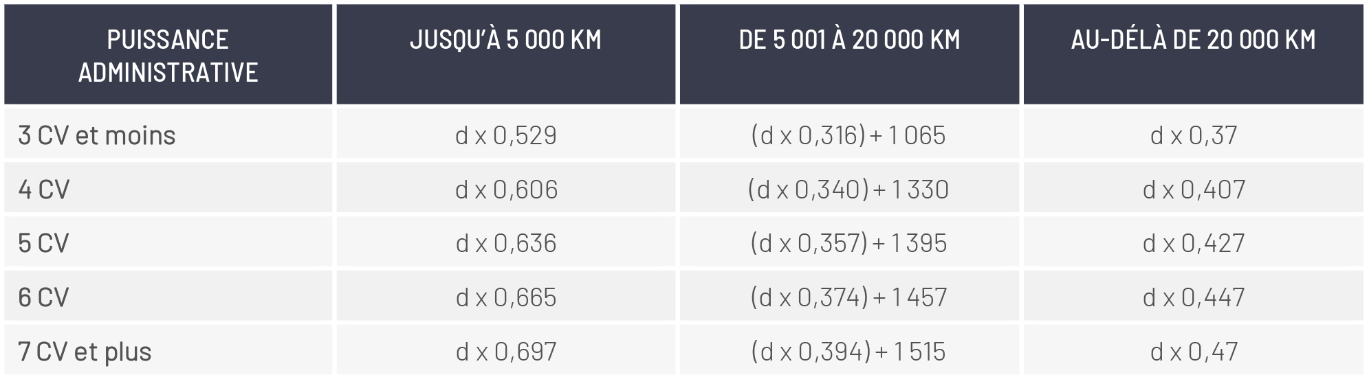 Le dernier arrêté du 27 mars 2023, publié au JO le 07 avril 2023, fixe les barèmes kilométriques permettant de calculer les frais de véhicules déductibles à compter des revenus de 2022 et repris à l’identique par l’administration fiscale pour les revenus de 2024 dans sa brochure.
